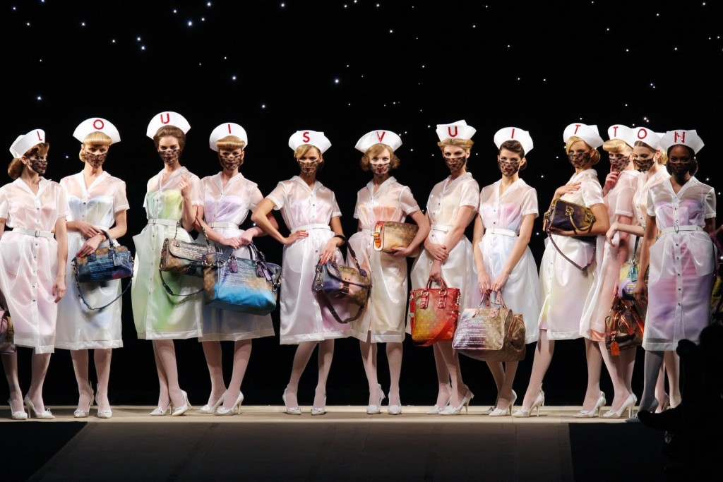 The art world anti -hero Richard Prince inspired the brand and so collaborated with him. SS08 runway show, was walked by twelve models dressed as nurses, each with a letter on their hats to spell ‘Louis Vuitton’. The show was inspired by the artists’s most famous Nurse paintings, which very well captured the art into real life.