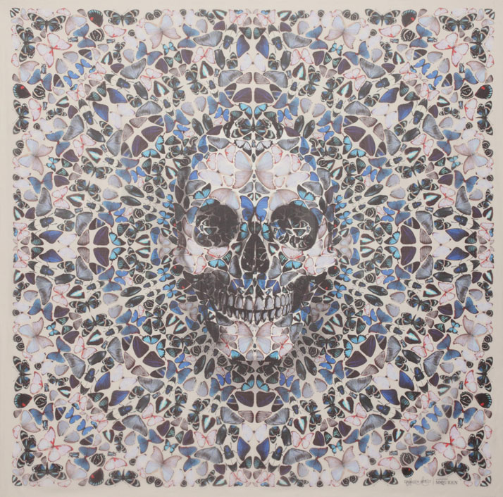 The iconic skull scarf was first displayed in SS03 Irere collection. Each design was adapted from Hirst’s Entomology series.