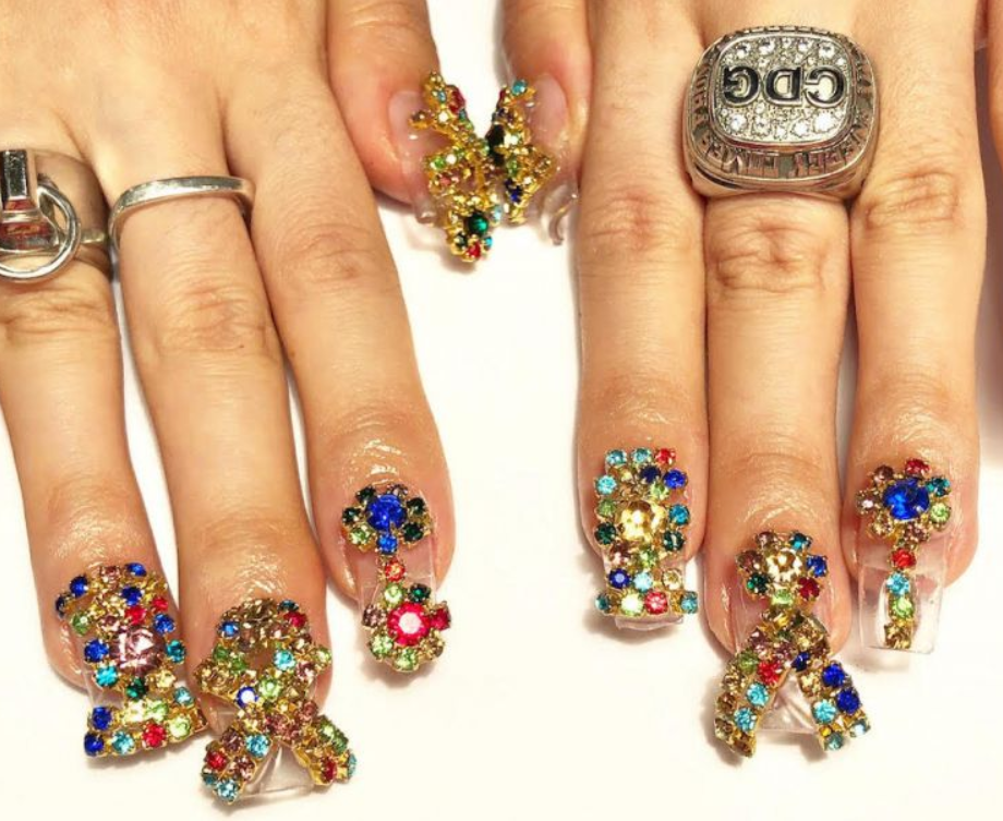Stated by celebrity manicurist Mei Kawajiri has been creating portraits for a very long time and now creating 3D designs using acrylic powder. Kawajiri created the diamante-encrusted, flame-hued nails for Balenciaga’s SS17 ready-to-wear show and brought back the term extreme nail art. Bigger and bolder graphics were ready to shout out loud, making an individual statement.