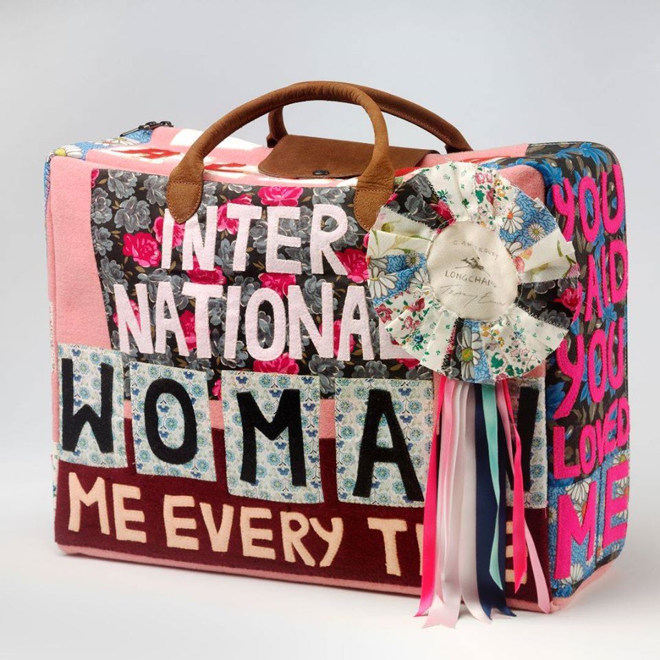 This bag is a collaboration between Longchamp and renowned artist Tracey Emin. Emin’s art is highly confessional and draws upon her life experiences in a variety of media and the bag design reflects the story of an ‘International Woman’ travelling from one city to another, in search of an ‘International Love’ .